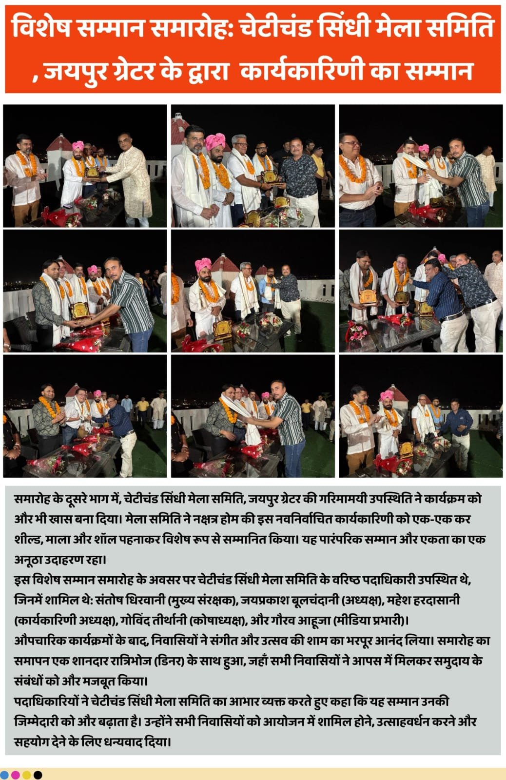 पूज्य सिंधी सेंट्रल पंचायत जयपुर महानगर के अध्यक्ष पद के चुनाव चार अगस्त 2024 को होने हैं जिसको लेकर जयपुर सिंधी समाज में जोर-शोर से